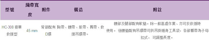豪華救援型安全帶HC-308參數表: