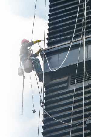 入伏以來(lái)烈日炎炎,為了作業(yè)的安全,盡量把工作安排在上午。早上九點(diǎn)在八一大道的投資大廈上4名“蜘蛛人”開(kāi)始作業(yè),他們身上綁著的安全繩索有100多斤重,他們不僅要在空中擦拭玻璃,還要不停地來(lái)回?cái)[動(dòng)身體、變換位置,尤其是距離地面越近,作業(yè)難度越大,高空作業(yè)安全繩跟隨他們的移動(dòng)在不停的擺動(dòng)、移動(dòng),使得他們能夠靈活作業(yè),提高工作效率。