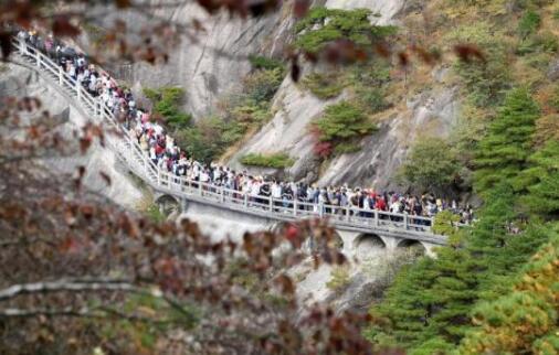 國慶假期期間黃山景區游客日均超過3萬人,景區內各循環道全部開啟,合理調整人流,保證游客安全。