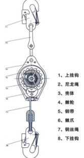 1、上掛鉤:上掛鉤掛在工作點上方的結構架上;