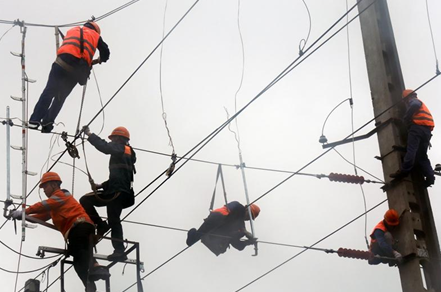 無論是高溫天,還是下雨天,鐵路工人在高空安全帶的保護下,都能心無旁騖、安全高效的完成電網維修工作。