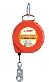 防墜器與安全帶、安全繩搭配使用,使用時只需要將錦綸吊繩跨過上方堅固鈍邊的結構物上,將錦綸繩上的鐵鉤掛入“n”形環上,將鋼絲繩上的鐵鉤掛入安全帶上的半圓環內即可使用。萬一失足墜落,安全繩拉出速度明顯加快,器內鎖止系統即自動鎖止。使安全繩拉出距離不超過0.2米,沖擊力小于2949N,對失足人員毫無傷害。負荷解除即自動恢復工作。工作完畢安全繩將自動回收到器內,便于攜帶。